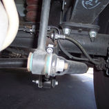 The Transit single rear wheel cargo vans do not have a rear anti-roll bar. The passenger vans and the 350 dual wheel vans have the rear bar. Ford hanger arms bolt into a threaded hole located on the outside of the frame rail. Unfortunately the cargo vans without the bars have the hole in the frame at the correct location but Ford saved money by not installing the threaded insert in the hole. (The extended van has the threaded holes without the bar) Fortunately there is another hole on the inside of the frame rail that lines up with the outside frame hole. Unfortunately the inside frame hole on the right side is covered by the exhaust pipe hanger bracket. The bracket must be removed and the top 1 1/2" needs to be cut off to expose the inner hole. The top 1 1/2" is unnecessary and does not contribute to the strength of the bracket.